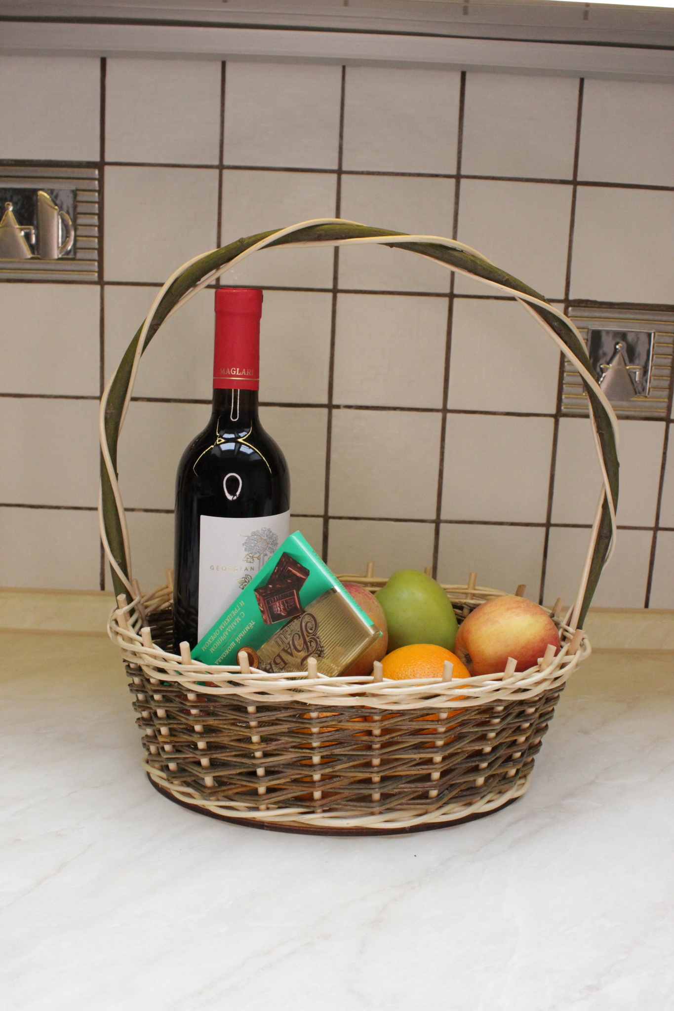 Корзина имеет фанерное дно и подходит для нетяжелых предметов. Наполнив самостоятельно корзинку фруктами, цветами или например, аксессуарами для ванны, подарок будет запоминающимся и станет украшением праздника. А получатель в последствии может использовать эту корзинку для декора своего интерьера.