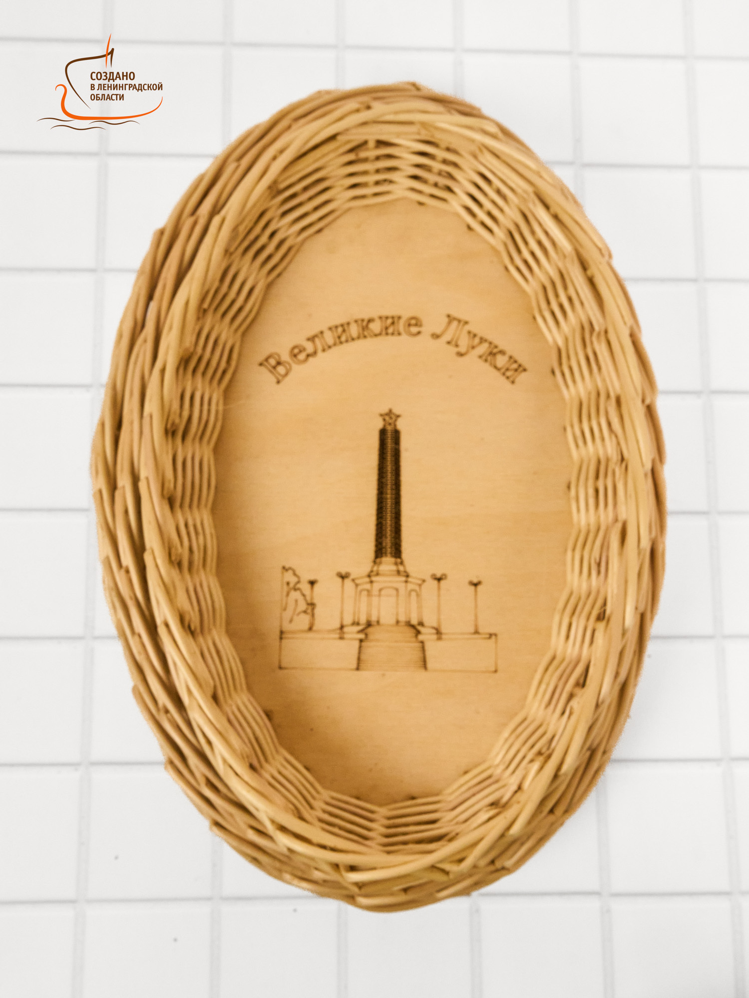 Тарелка плетеная из ивовой лозы серии "Серебряное ожерелье России" город Великие Луки арт. SOV1_Luki