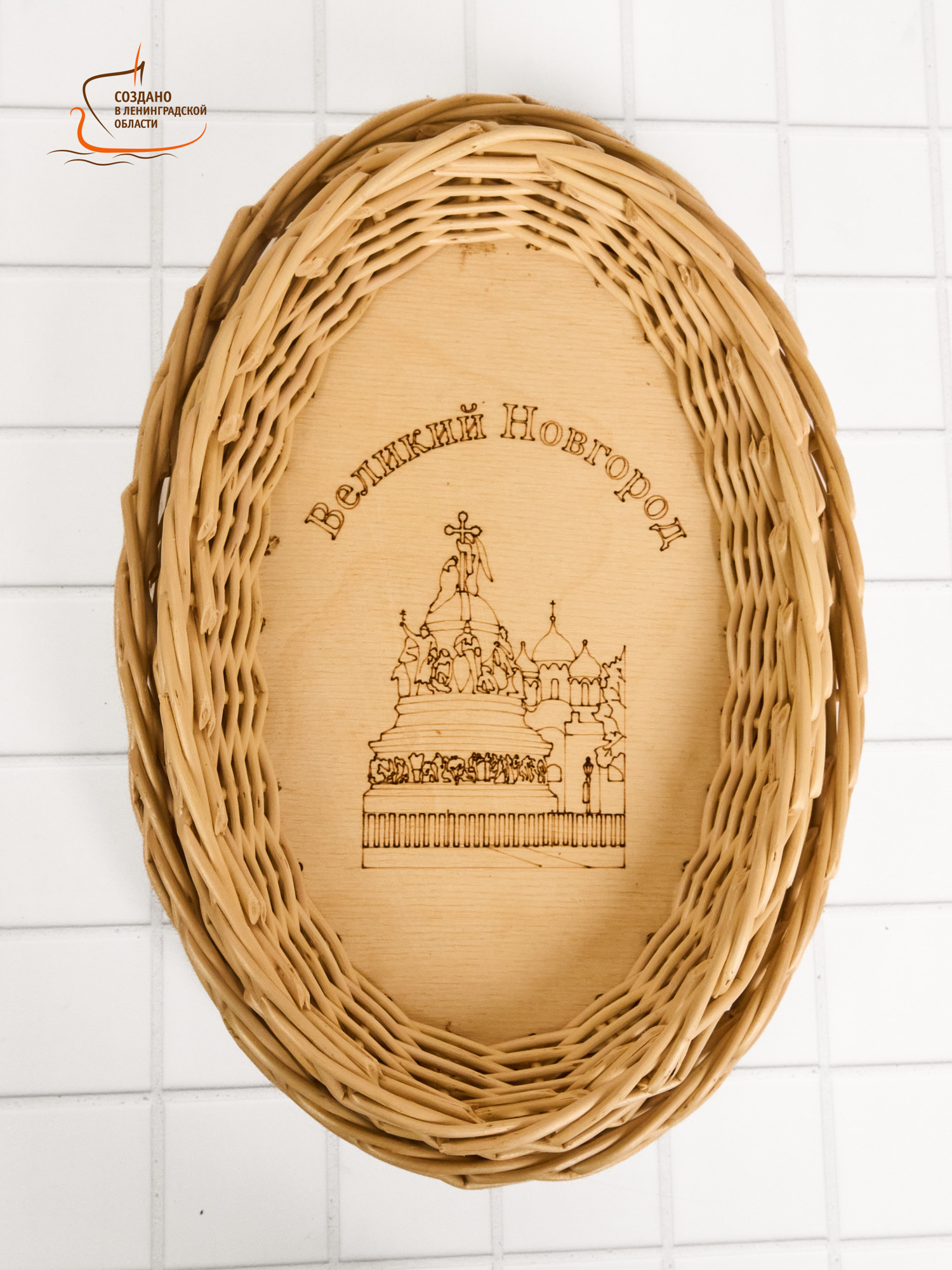 Тарелка плетеная из ивовой лозы серии "Серебряное ожерелье России" город Великий Новгород арт. SOV1_Novg